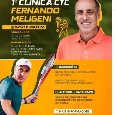 A clínica com Fininho é exclusiva para sócios. Ela acontece nos dias 11 e 12 de outubro. No sábado será das 10h30 às 12h30 e no domingo das 15h30 às 17h30.