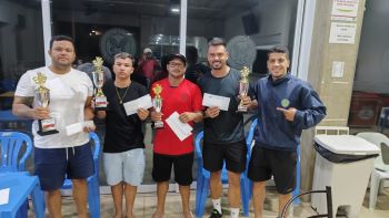 Professor Tales (primeiro da direita), entrega a premiação aos truqueiros associados do Clube de Tênis Catanduva. Torneio retorna em Fevereiro.