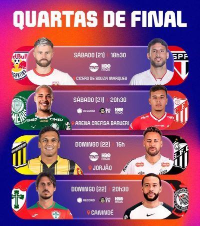 Os confrontos já estão definidos e colocam frente a frente tradição, rivalidade e a força das surpresas da temporada. No sábado (21), às 18h30, o São Paulo encara o Bragantino em duelo que promete equilíbrio e intensidade do início ao fim. Mais tarde, às 20h30, é a vez do Palmeiras entrar em campo contra o Capivariano, buscando confirmar o favoritismo diante de um adversário que quer surpreender.