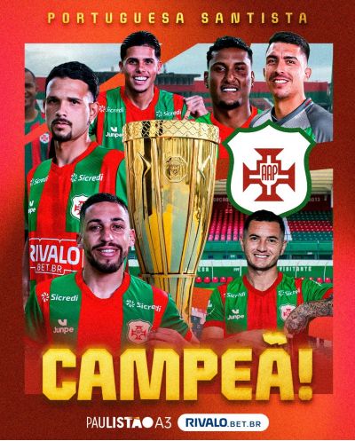 A Portuguesa Santista é a campeã do Paulistão A-3 2026. Neste domingo, dia 26 de abril, o time venceu o Marília por 2×0, jogando em Santos, e garantiu o título. Na última quarta-feira, em Marília, o primeiro jogo havia terminado 2×2. Os finalistas já haviam conquistado o acesso à Série A-2 de 2027, conforme prevê o regulamento da Federação Paulista de Futebol.