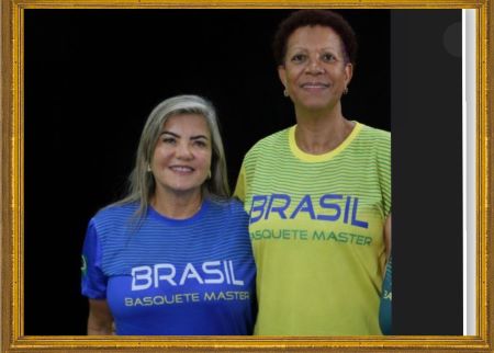 Celinha (de azul) e Mirlei seguem treinando para representar o Brasil na categoria 60+ da seleção brasileira de basquete feminino.
